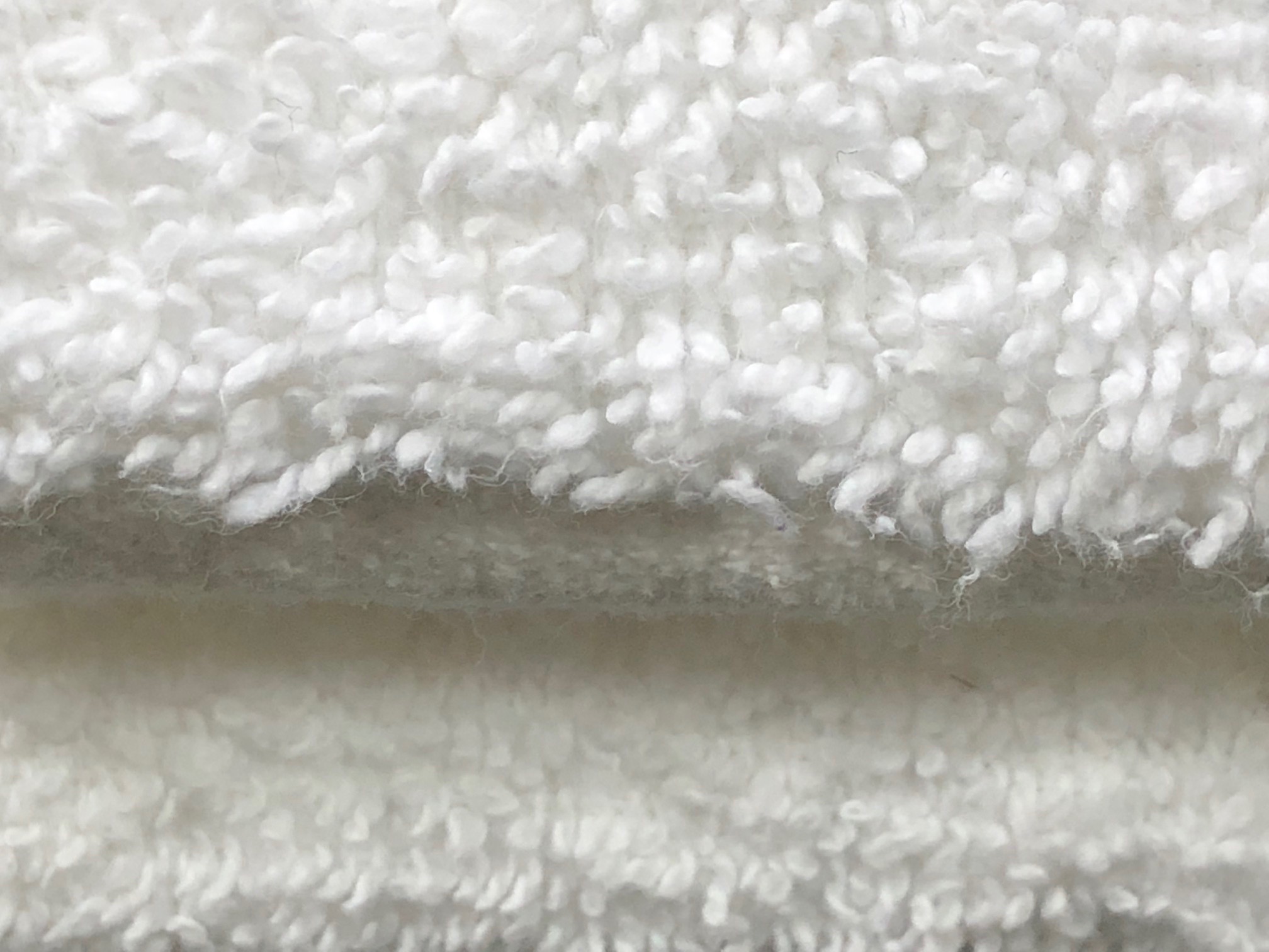 New, Virgin, 100% White Cotton Terry Towel. All edges are sewn.